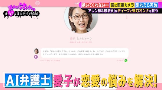 アレン様とヤバイ男話で共感の嵐!「最新AI弁護士」が、恋愛のお悩みを秒で解決! 訴えたいオンナたちのディープで過激なお悩みの連続!