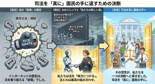 【泣き寝入りゼロへ】司法の民主化を実現する「AI裁判シミュレーター」を全国民へ。AIで「2割司法」の壁を壊す。勝訴確率分析から訴状作成まで支援するリーガルテック弁護士法72条の壁を非営利スキームで排除