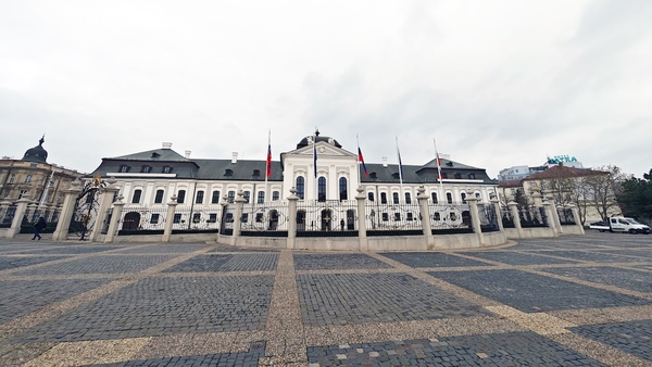 スタート地点はホテルの目の前にある広場。Geminiの最初の指示は「ホテルの真向かいにあるスロバキアの大統領官邸(グラサルコヴィッチ宮殿)で記念撮影」でした。ホテルの玄関を出ると、確かに目の前に美しい白亜の建物があります。Googleマップの情報によると、地球儀の彫刻がある噴水で知られているそうですが、冬場のためか水は出ておらず、地球儀らしき物体もいまひとつピンときませんでしたが、まずはここで一枚撮影。幸先の良いスタートです。