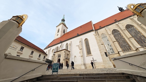 石畳の小道を抜け、ドナウ川沿いの道を歩いていくと、10分ほどで「聖マルティン大聖堂」が見えてきました。かつてハンガリー国王の戴冠式が行われた歴史ある教会です。中に入ってみると、派手さはありませんが、質実剛健といった趣の厳かな空間が広がっていました。ゴテゴテとした装飾よりも、こういった落ち着いた雰囲気の方が個人的には好みです。