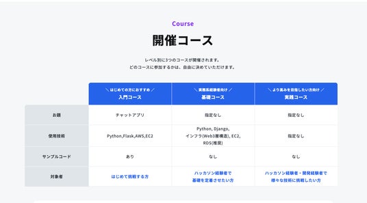 RareTECHのハッカソンは3段階の学習レベル別に開催されています。