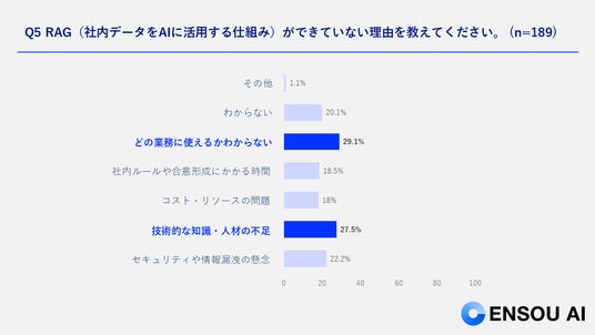 RAG導入が進まない理由は「用途の判断がつかない」(29.1%)と「技術人材不足」(27.5%)の二大課題