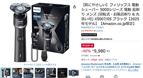 【Amazonタイムセール】フィリップス 電動シェーバー 5000シリーズ「X5007/05」登場!