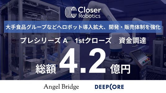 株式会社Closer(本社:茨城県つくば市、代表取締役:樋口翔太、以下「Closer Robotics」)は、Angel Bridge株式会社をリード投資家とし、既存投資家である株式会社ディープコアを引受先とする第三者割当増資、および株式会社三井住友銀行からの融資をあわせ、プレシリーズAラウンド 1stクローズ において総額4.2億円の資金調達を実施したことをご報告いたします。
