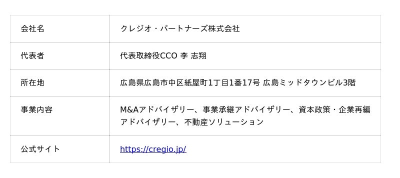 広島を拠点とするM&Aアドバイザリーファーム、クレジオ・パートナーズ株式会社(本社:広島県広島市、代表取締役:李 志翔、以下「当社」)は、スタートアップ支援体制の強化を目的に、オプティマ・ベンチャーズ株式会社 代表取締役社長の宮川 博之氏を顧問として招聘したことをお知らせいたします。