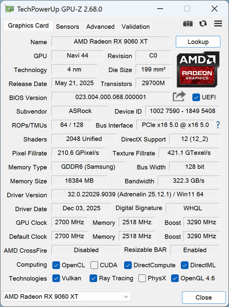 そのRadeon RX 9060 XTを搭載するビデオカードには、2基の大型ファンを採用するASRock「Radeon RX 9060 XT Challenger 16GB OC」を選んでいる。