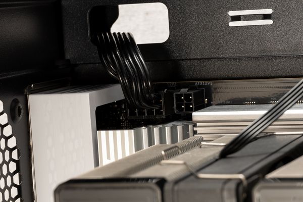 電源ユニットのEPS12Vコネクターは、8ピン(4+4ピン)になる。マザーボードのCPU12Vコネクターは、8ピン(4+4ピン)+4ピン仕様なので、4ピン足りなくて不安になるかもしれないが、8ピンだけで問題なく動作する