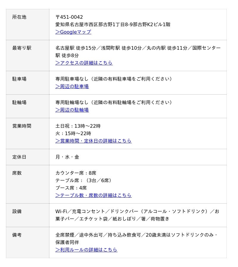 当店は、愛知県名古屋市西区那古野にあるコワーキングスペースです。お酒が飲み放題・お菓子食べ放題で、作業や勉強はもちろん、交流や会話を楽しむ場としてもご利用いただけます。