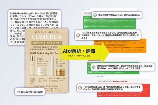 現在、化粧品分野を中心に業界ガイドラインを学習させており、法令および業界ガイドラインに基づいた広告表示チェックが可能です。