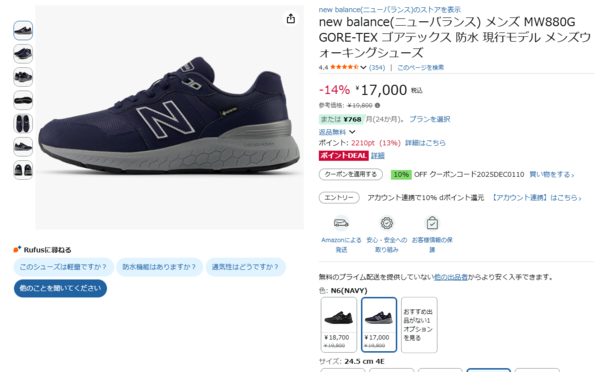 雨の日の外出や通勤、旅行先での街歩きなど、「天候を気にせず安心して履ける一足」を探している人におすすめのニューバランスのMW880G GORE-TEXが14%オフの17,000円で登場!