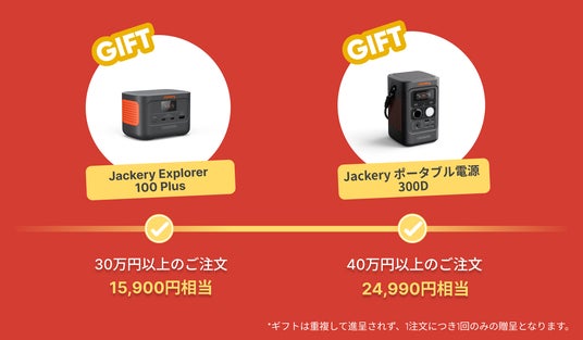 ~40万円以上の購入で新製品「Jackery ポータブル電源 300D」をプレゼント!豪華賞品が当たる抽選キャンペーンも同時実施~