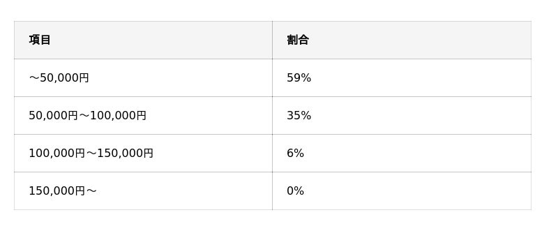 シミ取り放題プランの1回あたりの費用について、「50,000円以下」と回答した方が59%と最も多い結果でした。