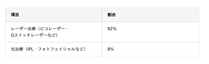 - 施術の種類:「レーザー治療(ピコレーザー・Qスイッチレーザーなど)」92%