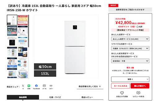 家電を中心に、ベビー用品やキッチン雑貨、ペット用品、食品まで幅広く展開されており、暮らしに役立つ商品をお得に購入可能です。