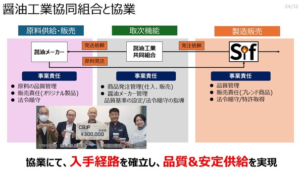 Smoke-i-freetが開発した醤油粕アップサイクル燻製材は、従来の木材より燻製を短時間化、低温化できるため工場の稼働時間を短縮できるという。また、殺菌効果が高いため食材のロングライフ化に寄与し、さらに醤油の薫香により塩分・糖分が低くても味わいは変わらず、おいしく感じるというメリットがある。