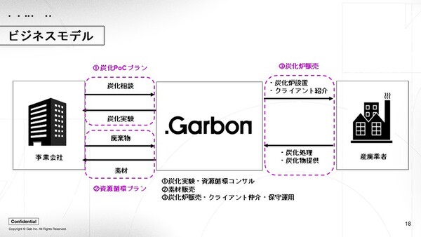 Gabでは、頭打ちになっているリサイクル率を引き上げるため、廃棄物の炭化技術を活かした新循環ソリューション「.Garbon」を開発した。