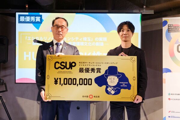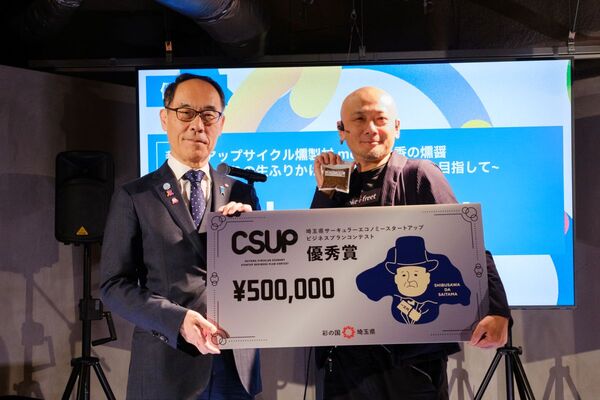 埼玉県は2025年11月11日にイノベーション創出拠点「渋沢MIX」にて、第2回埼玉県サーキュラーエコノミー スタートアップビジネスプランコンテスト「CSUP(シーサップ)」のファイナルピッチ(最終審査)を開催した。全国のスタートアップや社内ベンチャーなどを対象に、埼玉県内におけるサーキュラーエコノミー推進を目的としたビジネスプランコンテストだ。この日、一次審査を通過したファイナリスト8名による公開ピッチと最終審査、大野元裕・埼玉県知事による表彰が行われた。