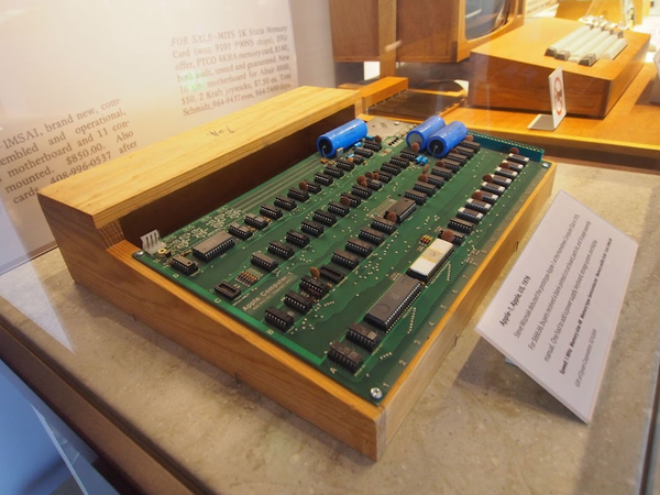 同じくコンピュータ歴史博物館に展示されている木の箱入りのApple 1は、ウォズニアックのサイン入りだ。
