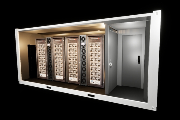 同指標では、1.1前後が付帯設備の電力効率が優れているとされ、最新の水冷方式の大規模データセンター全体でも1.05~1.2程度の数値になるという。コンテナ型データセンターでの水冷方式の利用は、コンテナ内部は冷却水の循環用設備が中心となり、冷却に関わる電力の大部分がコンテナ外の設備にオフロードされるため、電力効率を高められるのが特徴だ。