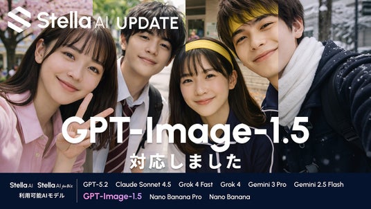 生成AIサービス開発を手掛ける株式会社SUPERNOVA(本社:東京都港区 代表取締役社長 木本 東賢 以下、当社)は、当社の生成AIサービス「Stella AI」および「Stella AI for Biz」において、OpenAI社の最新画像生成AIモデル「GPT-Image-1.5」への対応を2025年12月18日(木)より提供開始します。