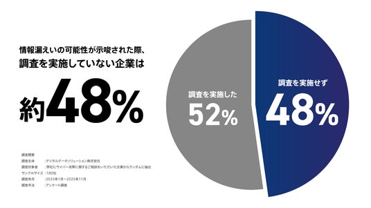 <情報漏えいの可能性が示唆された際、調査を実施していない企業は約48% >デジタルデータソリューションが2025年サイバー攻撃による情報漏えいの被害実態調査 を発表
