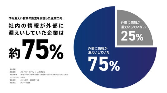 情報漏えいの調査を実施した企業では、約75%で実際に社内情報が外部に漏えいしていたことが判明しました。