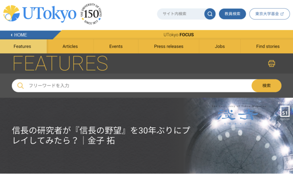 なお、金子教授が『信長の野望』をプレイした記事は、東京大学広報室が年に2回発行している広報誌「淡青」51号の特集「ゲームと東大(遊び+ルール+ゴール)×大学で導き出される答えは?」の一部だ。