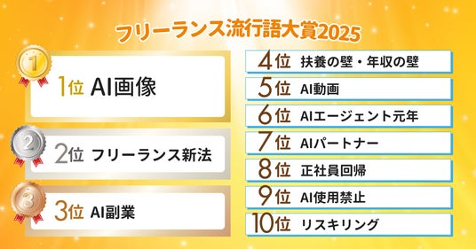 <フリーランス流行語大賞2025>全国のフリーランス513名が選定!大賞は「AI画像」!他「フリーランス新法」や「扶養の壁・年収の壁」など全10語を発表