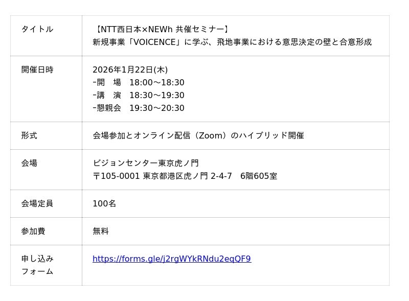 株式会社NEWh(本社:東京都千代田区、代表取締役:神谷 憲司、以下「NEWh」)は、NTT西日本株式会社(本社:大阪府大阪市、代表取締役社長:北村 亮太、以下「NTT西日本」)が2025年10月27日に提供を開始した音声AI新事業「VOICENCE」の事業化を支援しました。