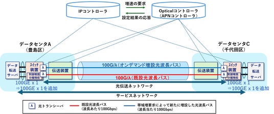 2. APNコントローラが100Gbpsの光波長パスを追加で自動設定