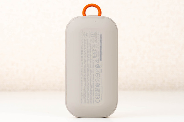 本体のサイズは118(W)×60(D)×32.4(H)mmで、色はブラックとサンドの2種類を用意。ループ付きデザインでバッグやベルトに簡単に取り付け可能で、重量は265g、バッテリー容量は10000mAhとなっている。パッケージはプラスチックフリーで、筐体は85%以上に再生プラスチックを使用しており、環境面にも配慮している。