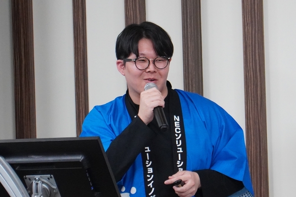トリを務めたNECソリューションイノベータは、ハッカソンのために顧客や業務特性、年齢もバラバラなメンバーが集結した。同チームもユーザーストーリーの想像から始めており、書店ごとにバラバラに運用するシステムをクラウドに統合したいという顧客ペルソナを設定。それに合わせて、システムアーキテクチャや開発プロセス、提供機能までをモダナイズする方針をとった。