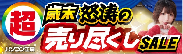 ユニットコムは、12月20日から12月31日にかけて「超 歳末怒涛の売り尽くしセール」を全国の店舗で開催する。様々な商品が特別価格で購入できるこの機会は、買い替えや新規購入を検討している人にとって見逃せない。