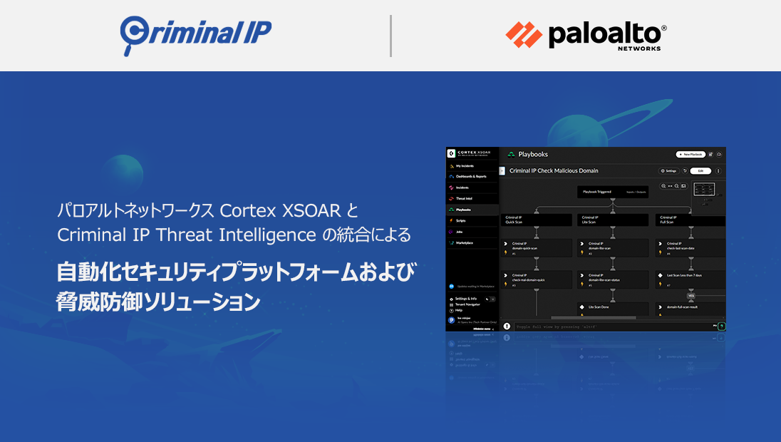 l パロアルトネットワークス「Cortex XSOAR」への「Criminal IP」搭載により、AIベースの自動化セキュリティ体制を実現