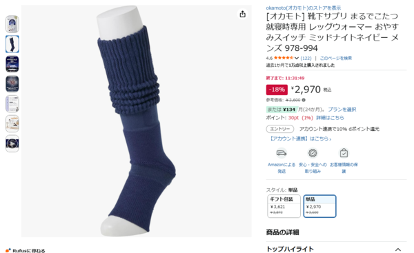 そんな冬の悩みをサポートしてくれるokamotoの「まるでこたつ おやすみスイッチ for MEN」が現在Amazonで18%OFFの2,970円で購入できます。