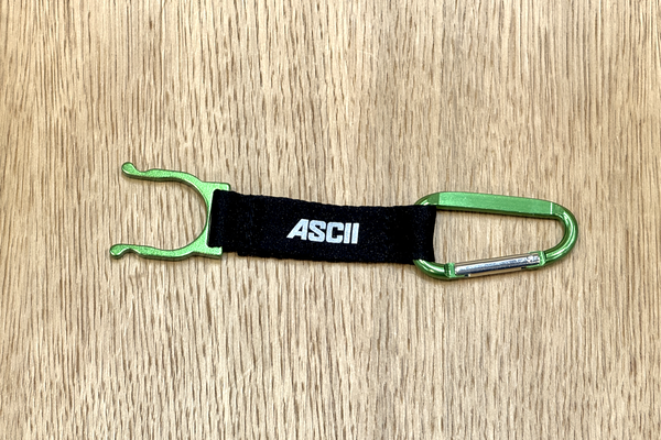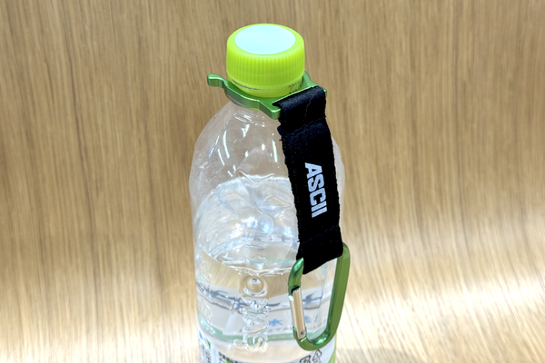 ノベルティグッズの2つ目は「カラビナ(ペットボトルホルダー)」です。ペットボトル飲料を持ち歩くのに役立ちます。