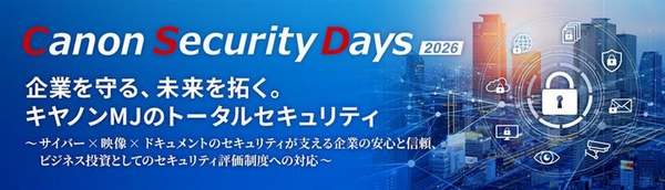 「Canon Security Days 2026」は、「企業を守る、未来を拓く」をテーマに掲げ、企業の経営層や官公庁のセキュリティ担当者に向けた内容となる。特設サイトからの申し込みが必要で、2026年2月10日まで受け付けている。