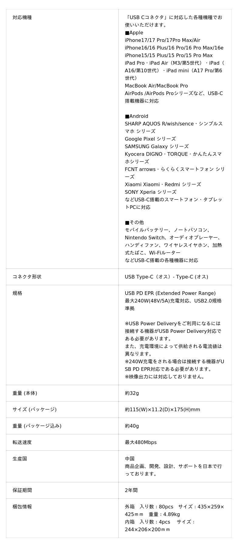 ※240W充電する場合は接続する機器がUSB PD EPR対応である必要があります。