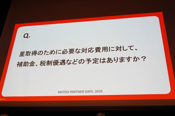 橋本氏:将来的には、政府調達の統一基準において、特定の星の取得を推奨するような記載が盛り込まれる可能性はありますが、現時点で決定している事項はありません。