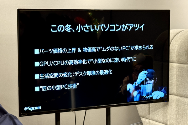 サイコムの高品質へのこだわり、自由度の高いカスタマイズへの姿勢を紹介しながら、話題は今回の展示のテーマでもある“小さいPC”へ。