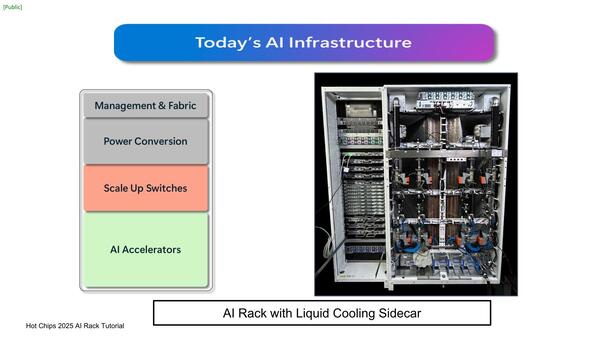 500kWや1MWという消費電力のほとんどは、最終的には熱になって放出されるので、これを冷却する必要が当然ある。前回説明したCatalinaは、Compute Rackの横にAALC(Air Assisted Liquid Cooling)を2つ並べる構成にしているが、実はこれもMetaだけの独創的な発想ではなく、わりと一般的な構造である。