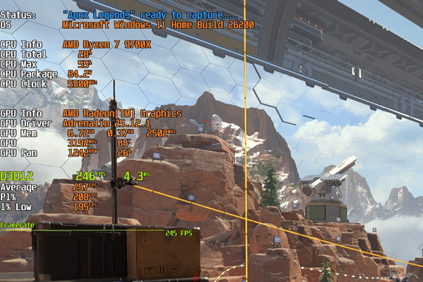 ゲーミングも同様で、定番「ファイナルファンタジーXIV:黄金のレガシー ベンチマーク」で、「非常に快適」指標の1万5000スコアを超えていた。さらにグラフィック品質を最高に設定した「エーペックスレジェンズ」も、フルHD解像度で平均フレームレートは240fps超えを出している。