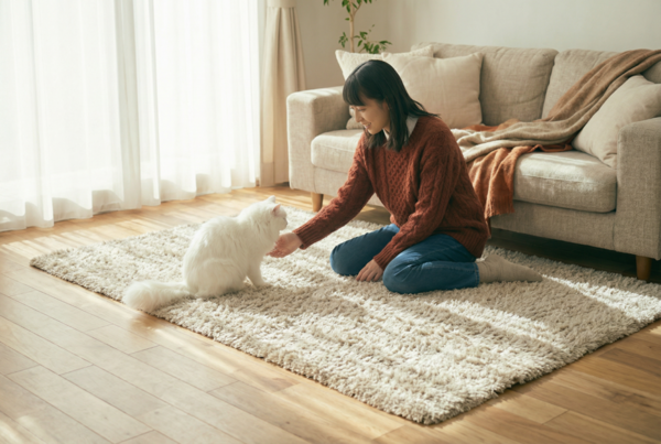 △明日来子さんが猫を抱き上げる15秒の作例。音楽や効果音、声は他のアプリを利用している