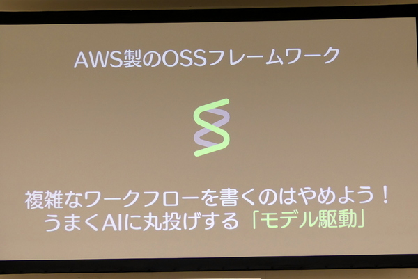 数あるAIエージェントのフレーム枠の中でSTRANDS AGENTS SDKのユニークな点は、モデル駆動型開発の考え方をいち早く取り入れた点だ。「LangChainが出てきた頃の2年前、AIエージェントを作るのはけっこう大変だった。仕事を頼もうとしてもLLMが今ほど賢くなかったので、ちゃんと仕事をやってくれなかった。そのため、ちゃんとワークフローを組む必要があった」と御田さんは指摘する。
