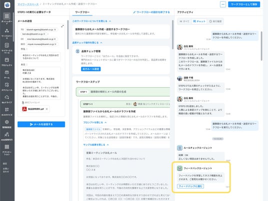 株式会社BLUEISH(東京都港区、代表取締役 為藤アキラ)は、法人向けAIエージェントプラットフォーム『BLUEISH Agents』において、AIワークフローを“ステップ単位”で解析・改善できる「フィードバックエージェント」機能の提供を正式に開始しました。