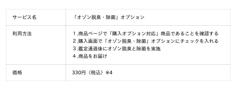 今回提供を開始する「オゾン脱臭・除菌」オプション機能は、購入者が中古アパレルの購入時に選択することができます。オプションをつけることで、鑑定・検品とあわせて運営側でアパレル商品をオゾン脱臭と除菌を施した状態でお届けする新サービスです。2025年8月に中古スニーカーの購入オプションとして提供を開始したもので、とくに「オゾン脱臭・除菌」が人気で、「ニオイはしっかり対策したい」というお客さまからのご好評をいただいておりました。本サービスにより、これまでニオイや汚れといった商品の状態を理由に出品・購入できなかった中古アパレルを、積極的にリユースする仕組みが生まれます。
