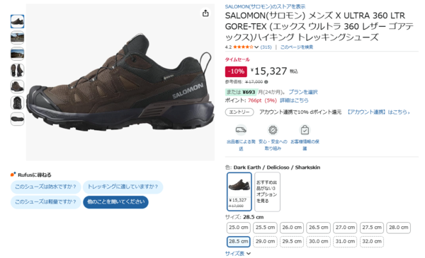 安定性・防水性・グリップ力を高いレベルで備えた、サロモンのX ULTRA 360 LTR GORE-TEXが10%オフの15,327円で、Amazonのタイムセールに登場!