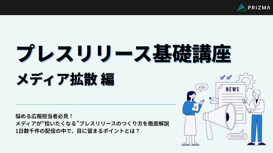 その現状を打破し、確実にメディア露出を獲得するため、株式会社PRIZMA(プリズマ)は、PR支援実績1,000社以上のノウハウを体系化した決定版資料『プレスリリース基礎講座 メディア拡散 編』を無料公開しました。