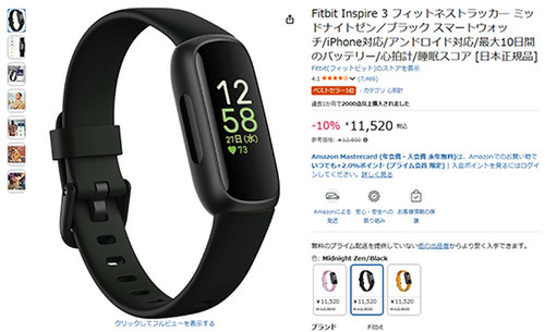 Fitbit(フィットビット)の人気フィットネストラッカ―「Inspire 3」が、Amazonセールに登場しました。参考価格12,800円から10%オフの11,520円で販売中です。
