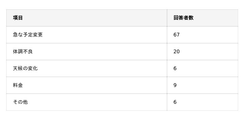 - キャンセルの原因で最も多いものは「急な予定変更」。